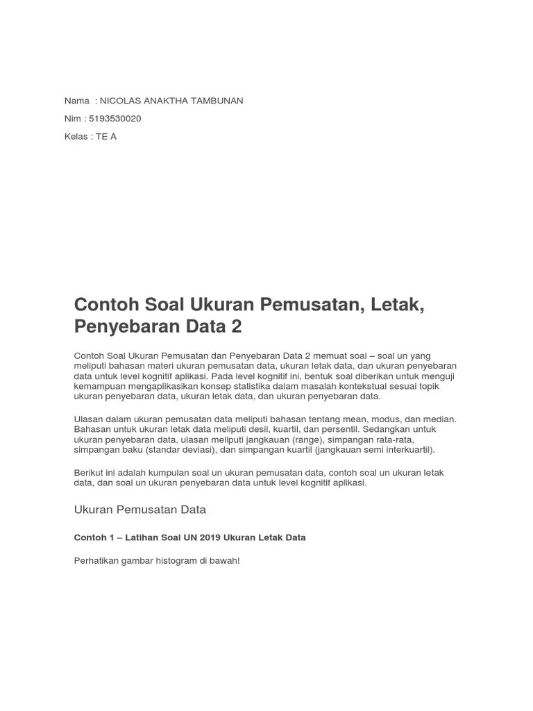 Kumpulan Soal Un Median / Contoh Soal Ukuran Pemusatan Dan Penyebaran Data Mathlaul Khairiyah : Mean, median, dan modus antara data kelompok dan tunggal mempunyai nilai yang sama.. Ulasan dalam ukuran pemusatan data meliputi bahasan tentang mean, modus, dan median. Median adalah pemusatan data yang membagi . Title slide of contoh soal mean median dan modus. Ketiga materi ini merupakan bagian bahasan dari materi statistika. April 2, 2020 2 min read.
